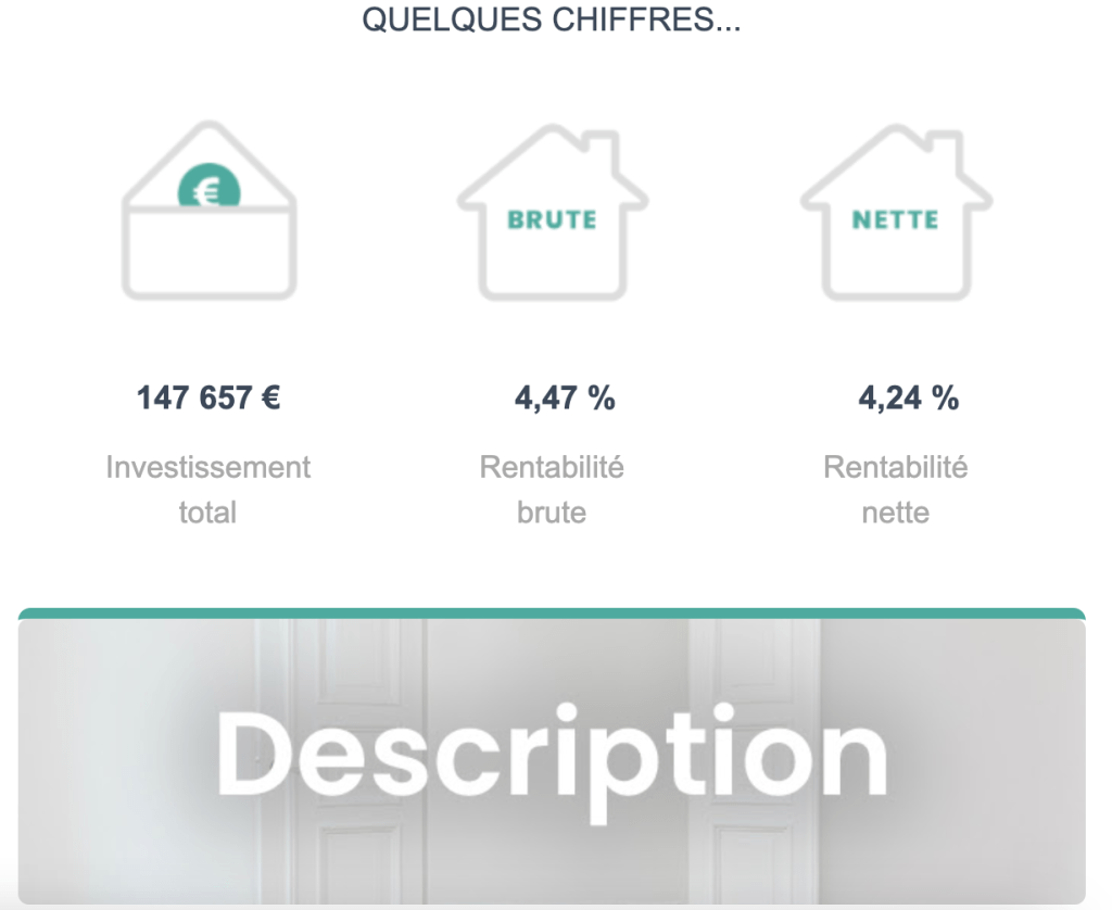 Dans les calculs de rentabilité d’IMMOCITIZ, on vous présente un mix entre une rentabilité brute et nette. C’est à dire qu’ils vont déduire uniquement les charges de copropriété et la taxe foncière pour déterminer votre rentabilité qu’ils appellent « nette ».
