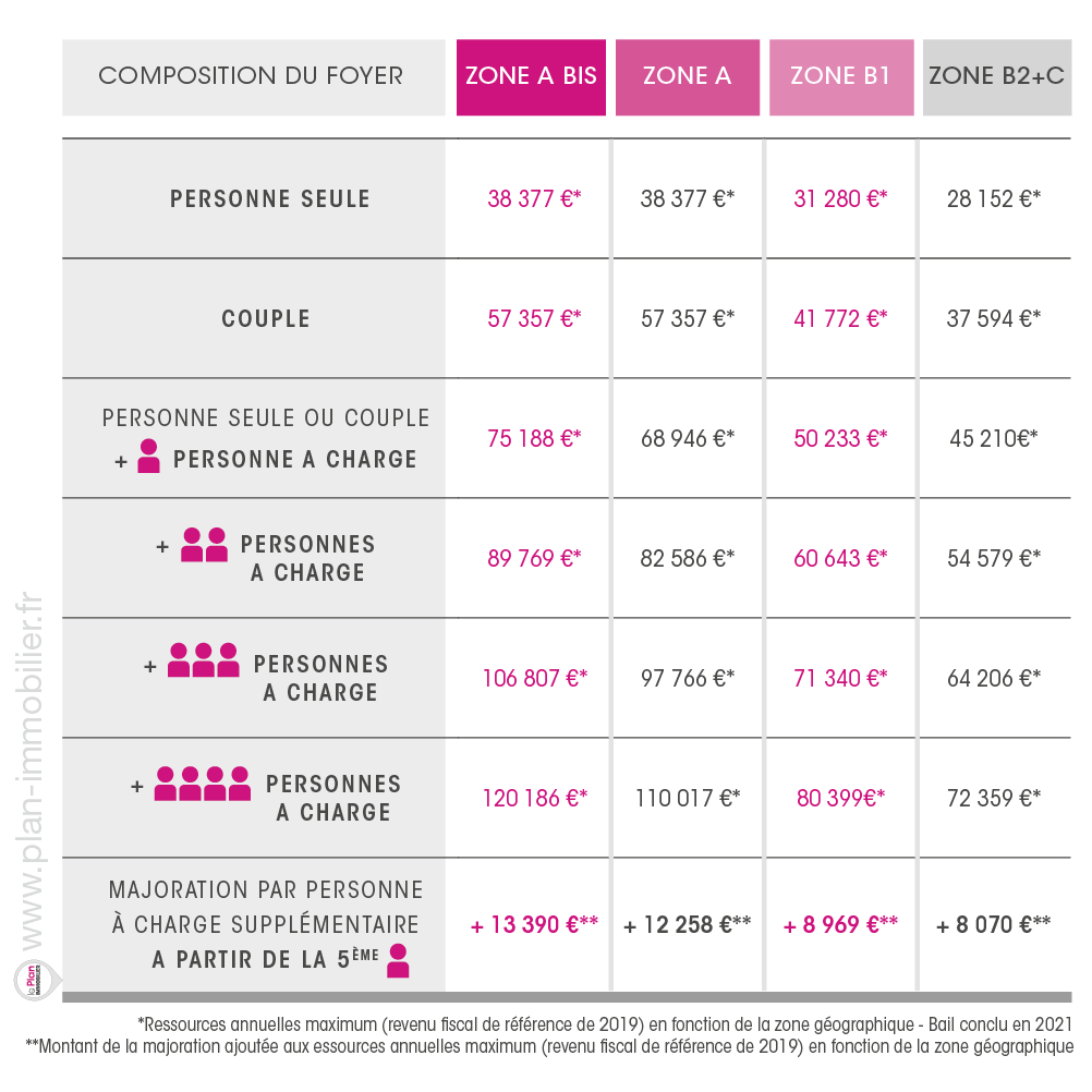 Tableau de plafonds de ressources locataires par zone