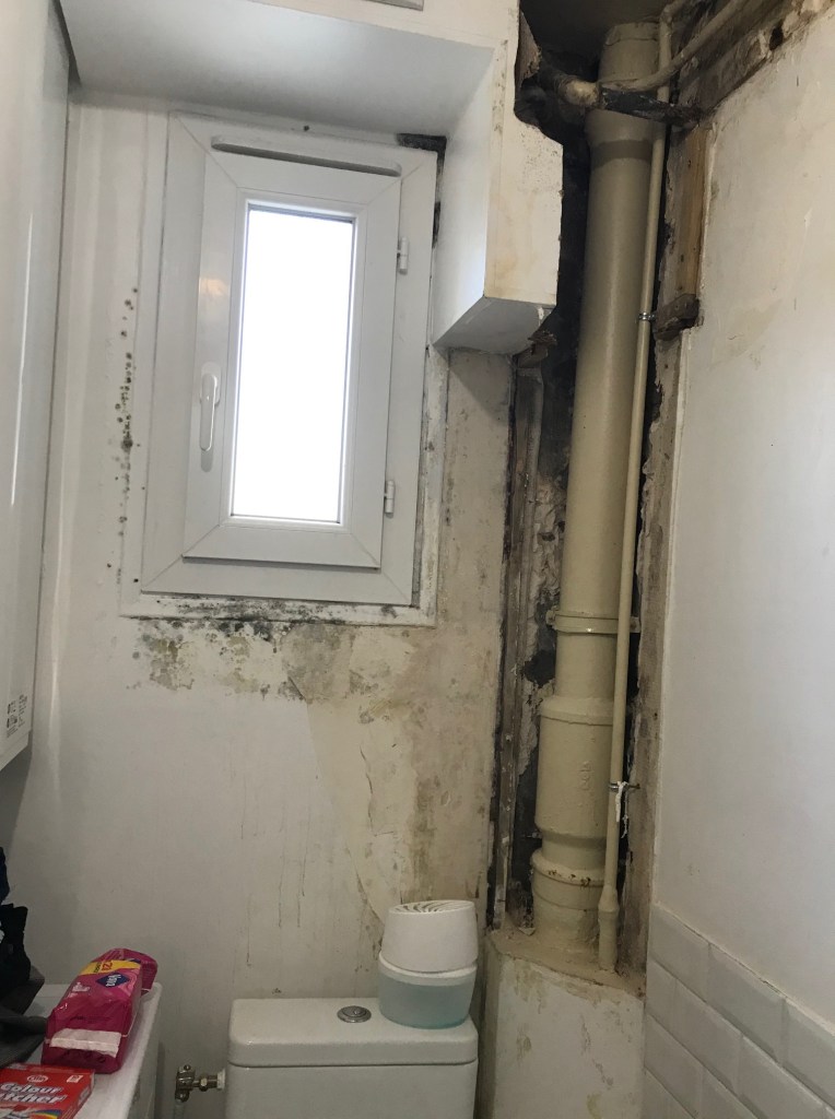 Nous sommes en Octobre 2020, nos locataires sont en place depuis à peine 1 mois. Jusque là tout s’était très bien passé, de l’achat à la réalisation des travaux, jusque la mise en location. Nous recevons un mail de nos locataires nous indiquant que des tâches de moisissures apparaissent dans la salle d’eau, non loin des toilettes.
